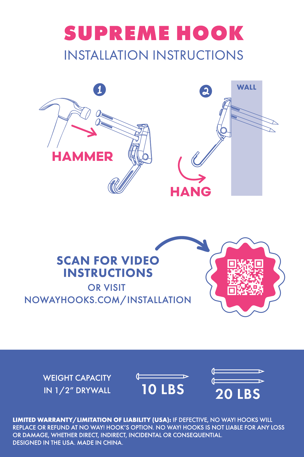 Limited Warranty/Limitation of Liability (USA): If defective, No Way! Hooks will replace or refund at No Way! Hook’s option. No Way! Hooks is not liable for any loss or damage, whether direct, indirect, incidental or consequential.